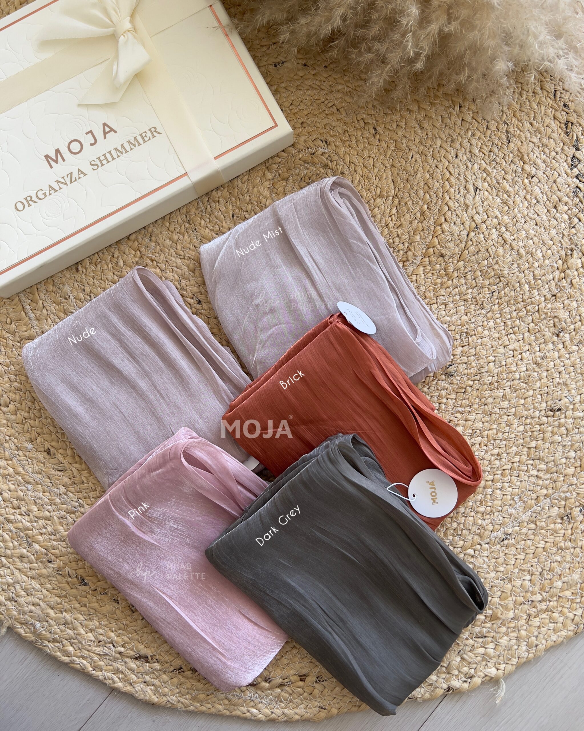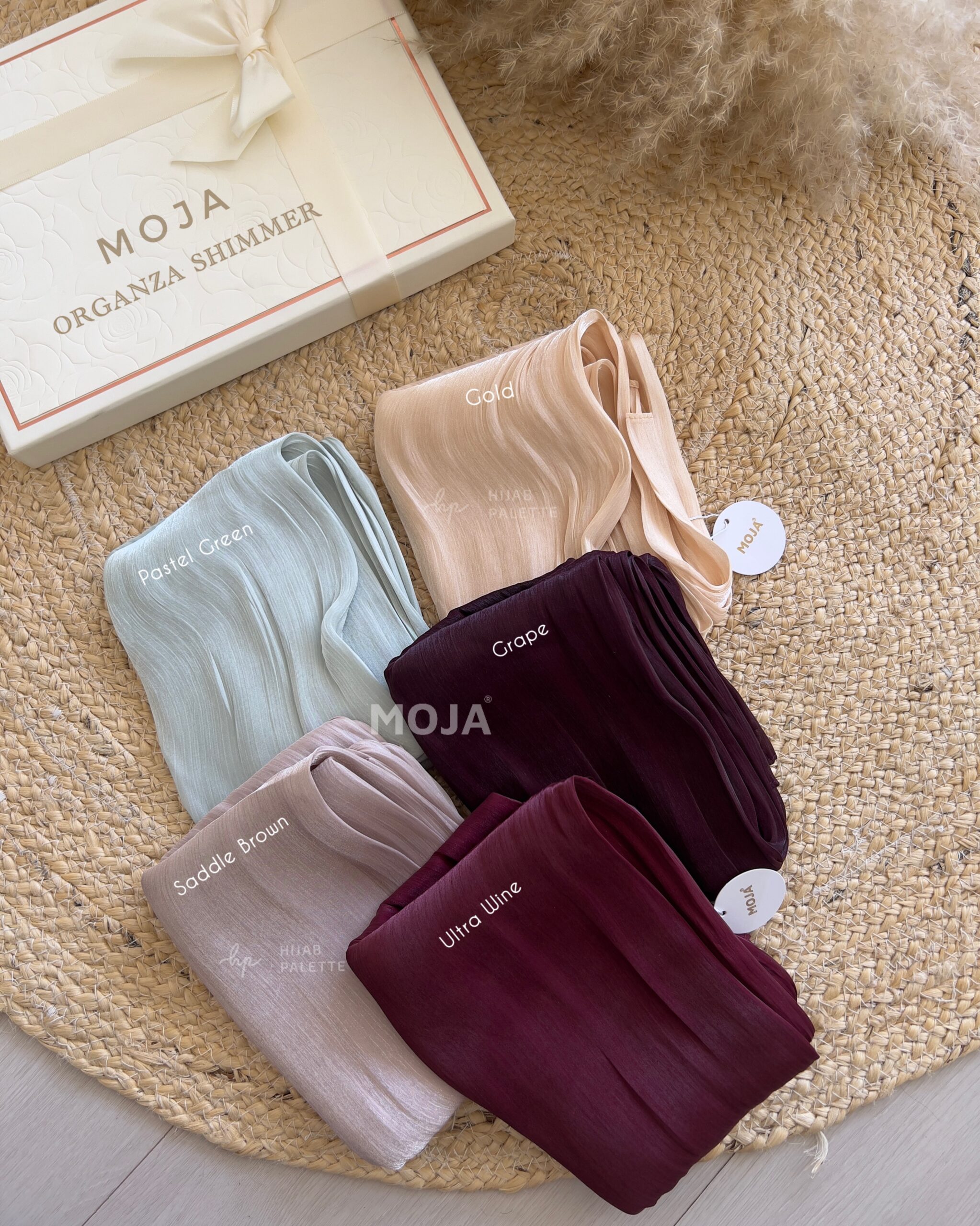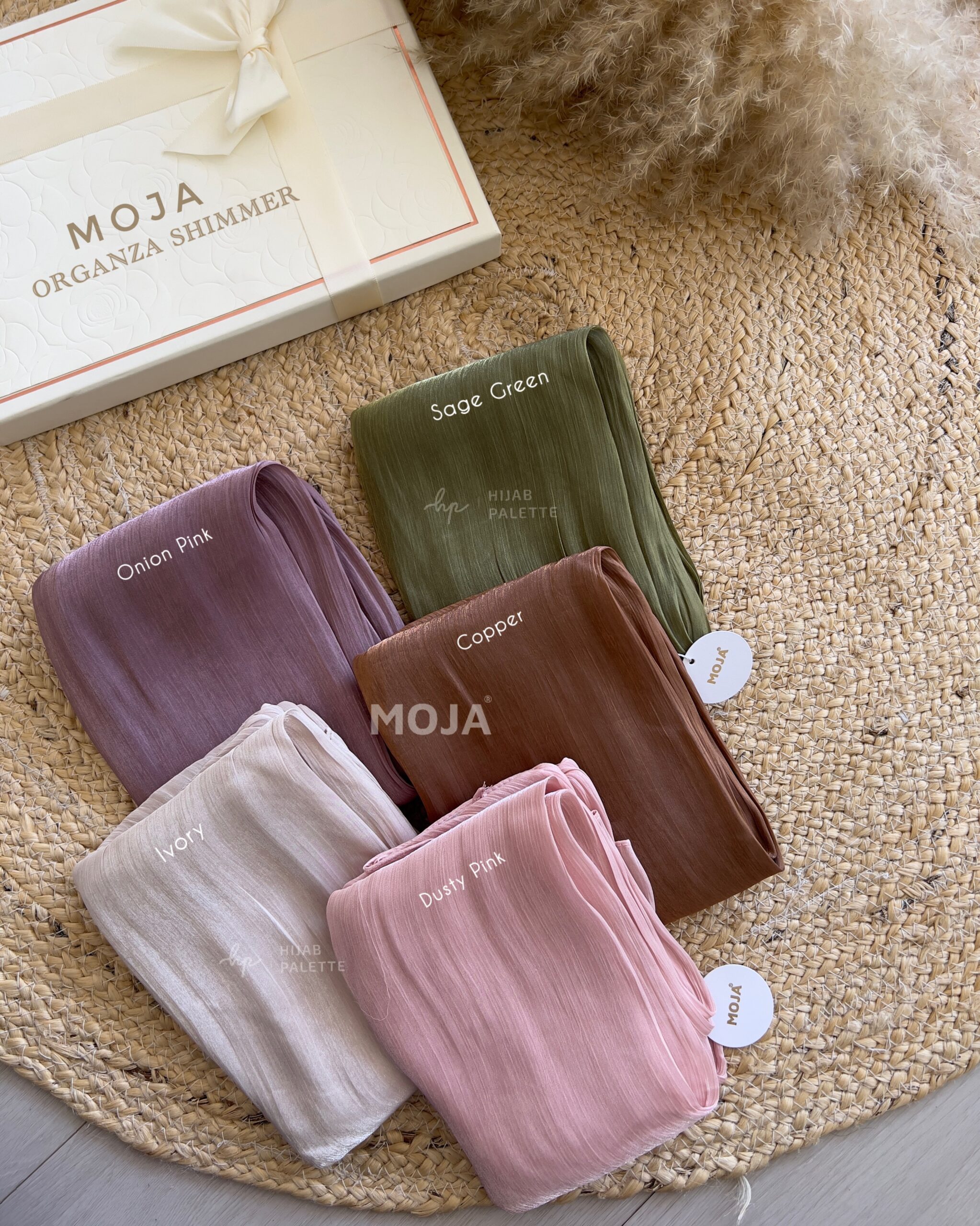 The MOJA Organza Shimmer hijab brings a bold yet elegant look with a smooth, airy texture. Designed for comfort and style, it complements both casual and festive outfits beautifully.